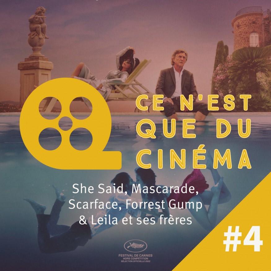 Pour ce quatrième épisode de "Ce n'est que du cinéma", Sophie, Zahra, Miguel et Martin nous parlent de SHE SAID, du nouveau film de Nicolas Bedos : MASCARADE. La pépite de passé fêtera les 40 ans de SCARFACE avec Al Pacino. Le "J’osais pas vous l’dire" parlera de FORREST GUMP et enfin le coup de cœur nous vient d’Iran, avec LEILA ET SES FRERES. Bonne écoute !